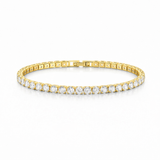 The Mia Tennis Bracelet in gold combines timeless luxury with a fresh, modern design. Its 4mm width offers a perfect balance between bold and subtle, making it ideal for all-day wear or a special evening out. This bracelet will be your go-to for that instant touch of class.