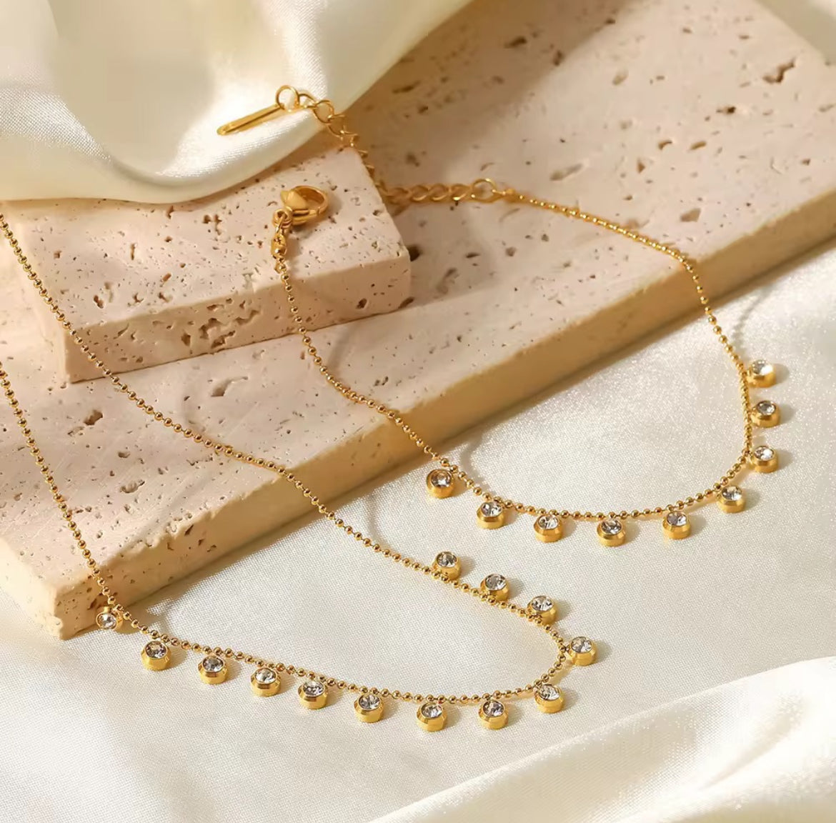 🌸 Material: Gold-plated alloy with clear cubic zirconia stones